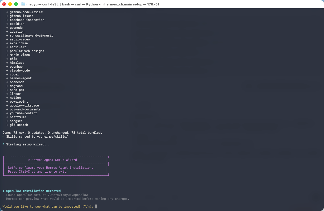 会问你是否需要导入openclaw小龙虾,一路输入 Y 就行